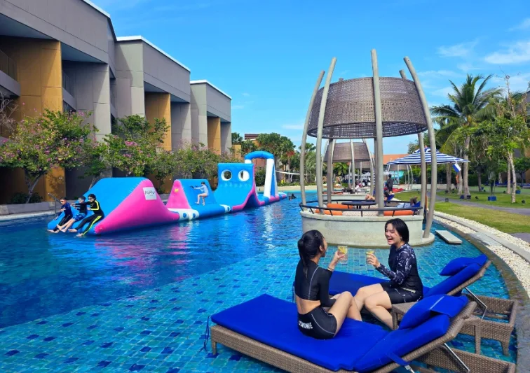 Inflatable water park equipment is a type of slide that uses air to make you float along the water track for fun. Create a water park with various shapes and designs. What kind of water park installer Thailand is there? Let me tell you that there are both single slides and double slides that you can play together with friends or family. There are also curved and steep slides. Water park slides, inflatable water park prices that will challenge and create excitement for all players.
