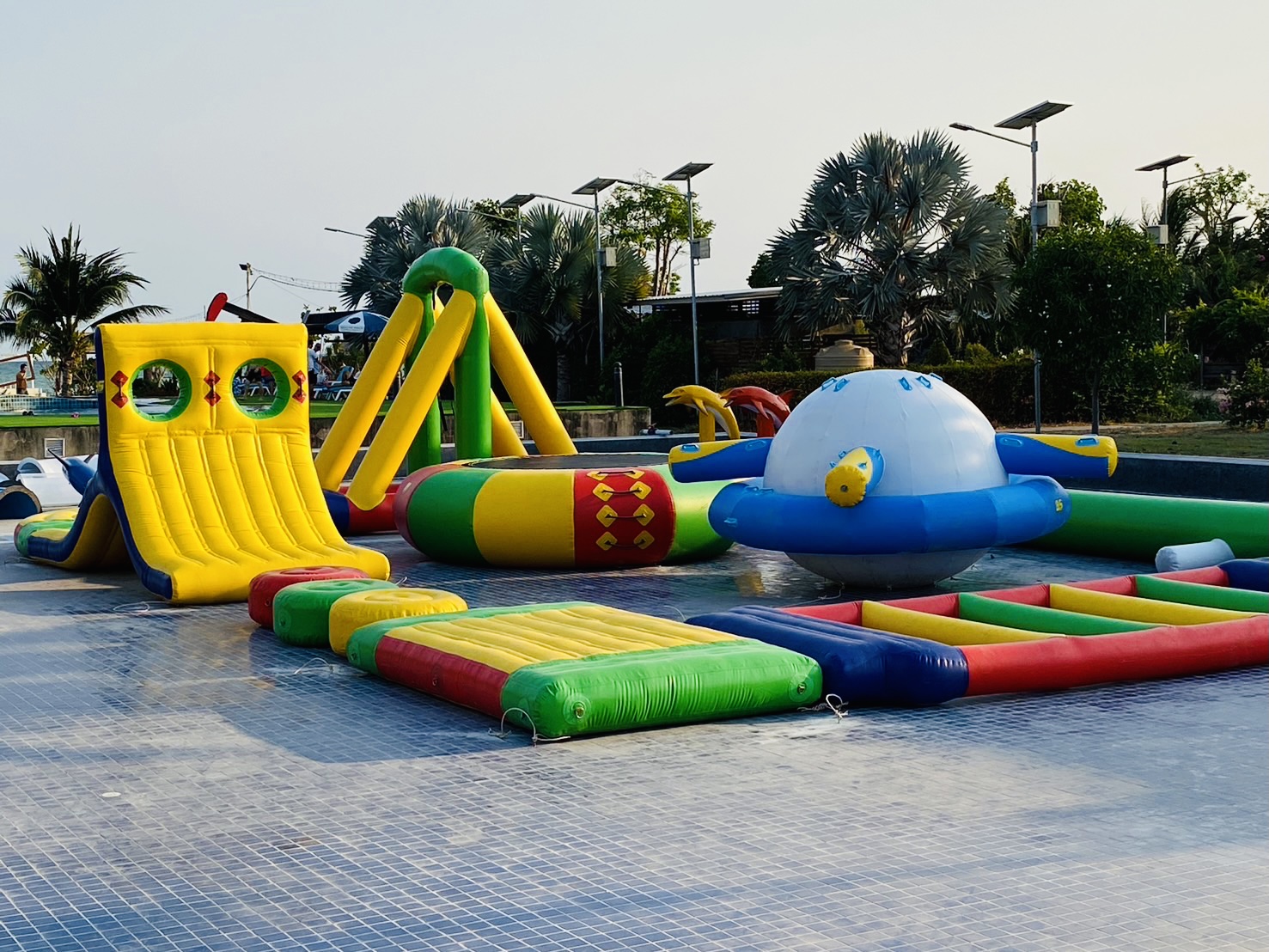 Factory that produces and sells inflatable water park equipment, a complete source for various water park equipment. It is a real factory that can produce every style, every budget, and can service and repair every type of wound because we are the ones who produce and repair everything. We produce and sell water park equipment and repair it by technicians who have been skilled in the industry for over 30 years. custom design inflatable water park